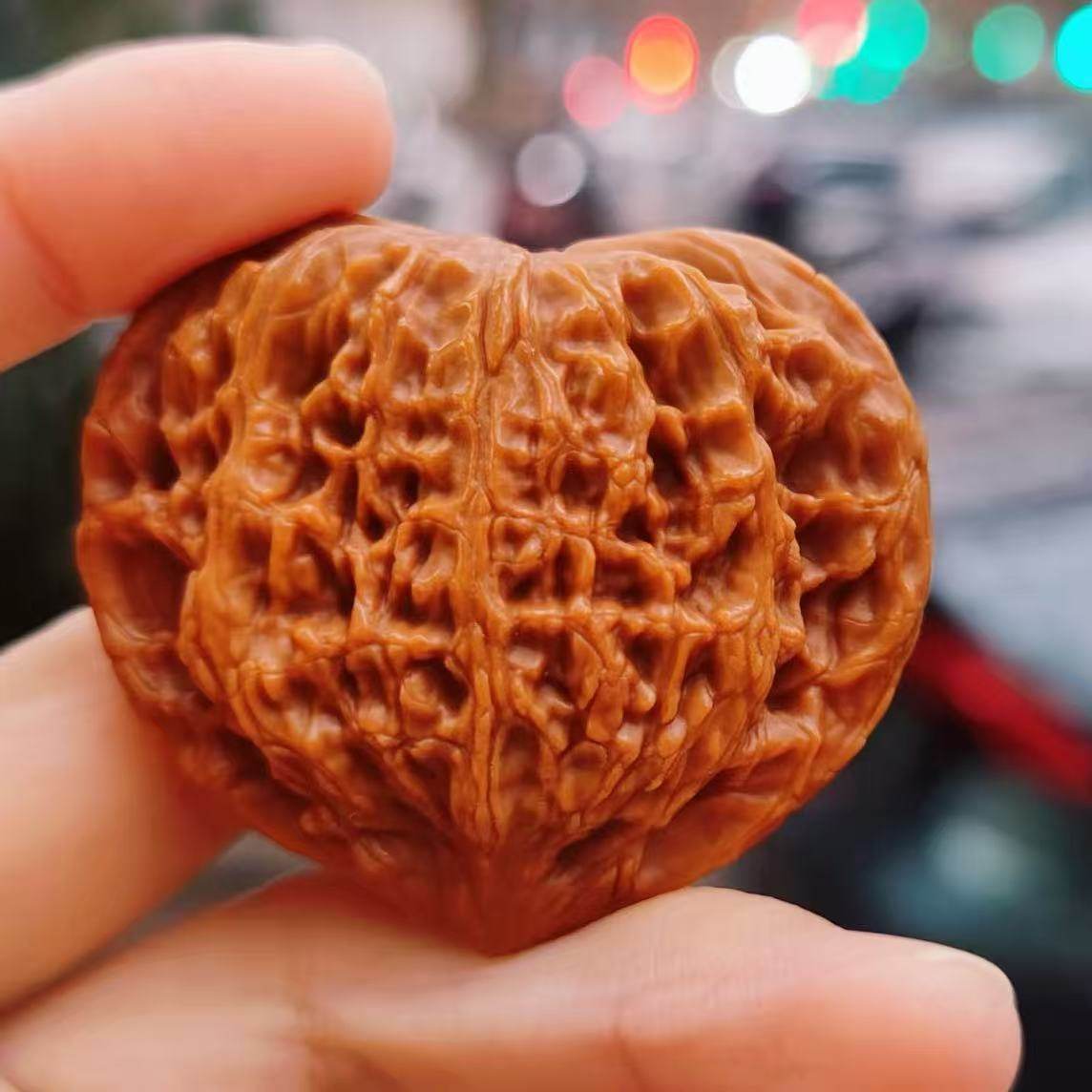 核桃文玩桃心形狮子头扁核桃爱心吊坠官帽心型挂坠配饰手把件