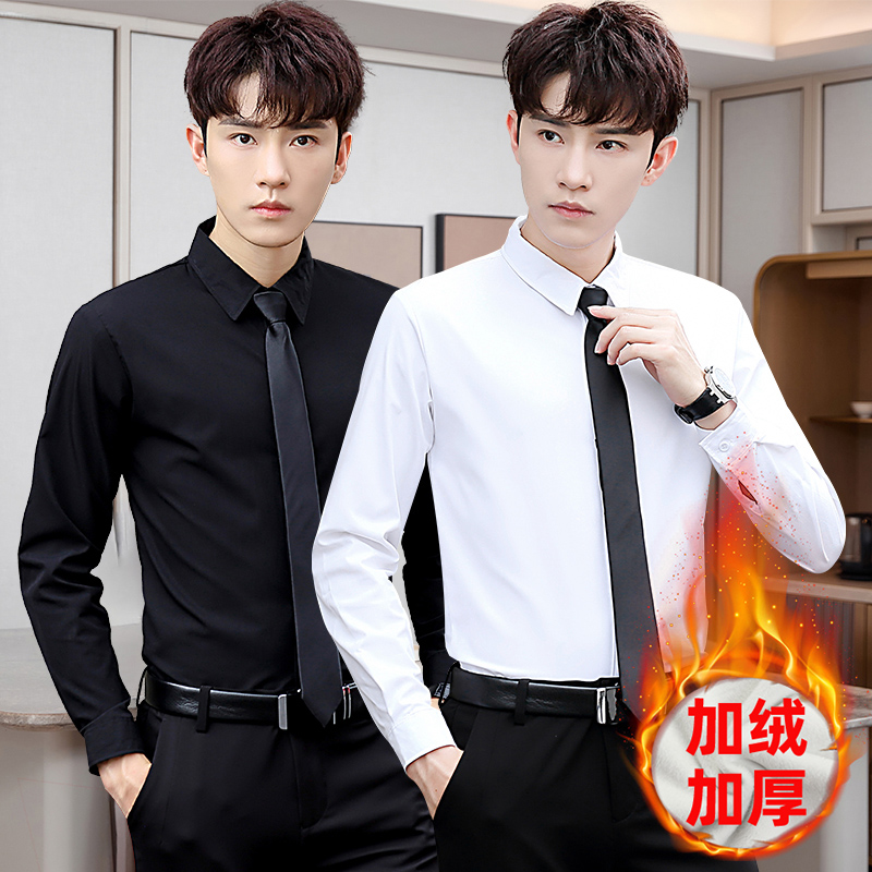 白衬衫男士长袖商务休闲免烫抗皱帅气职业正装加绒黑衬衣上班工装