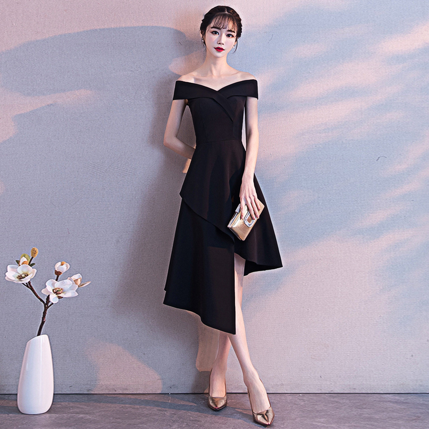 小个子名媛一字肩显瘦晚礼服