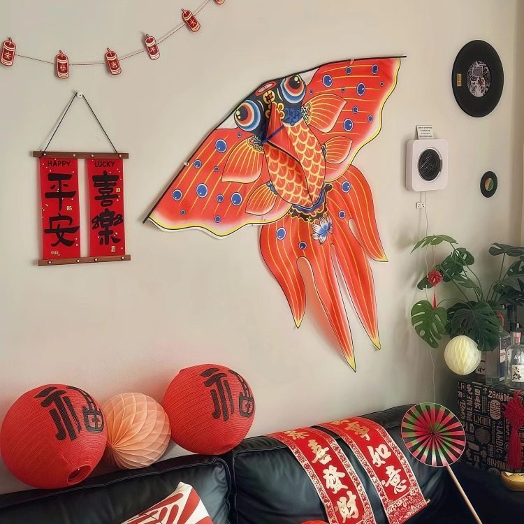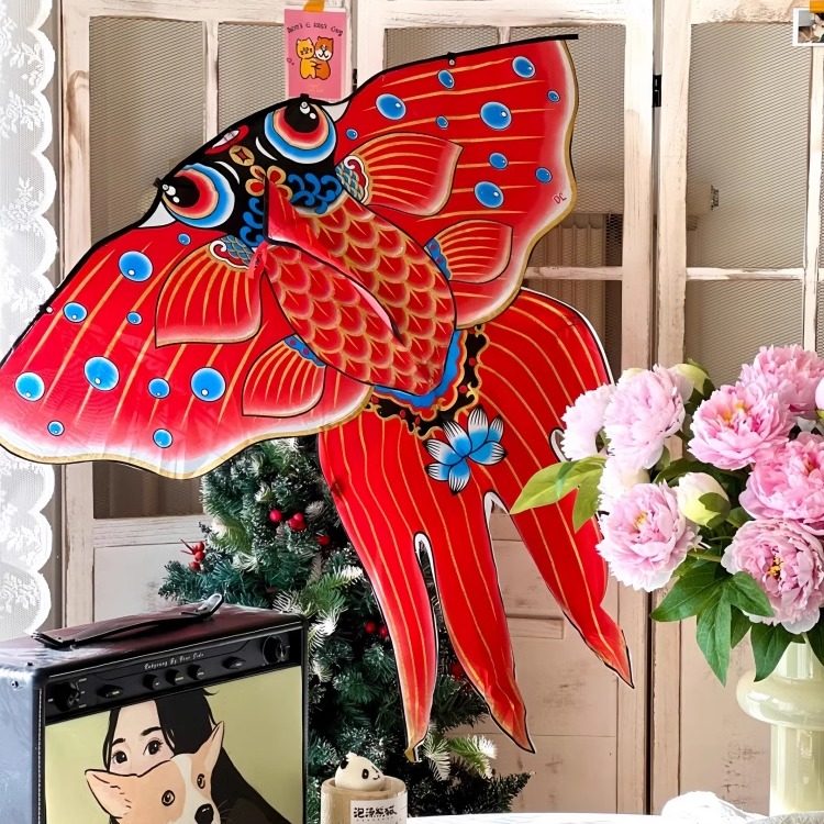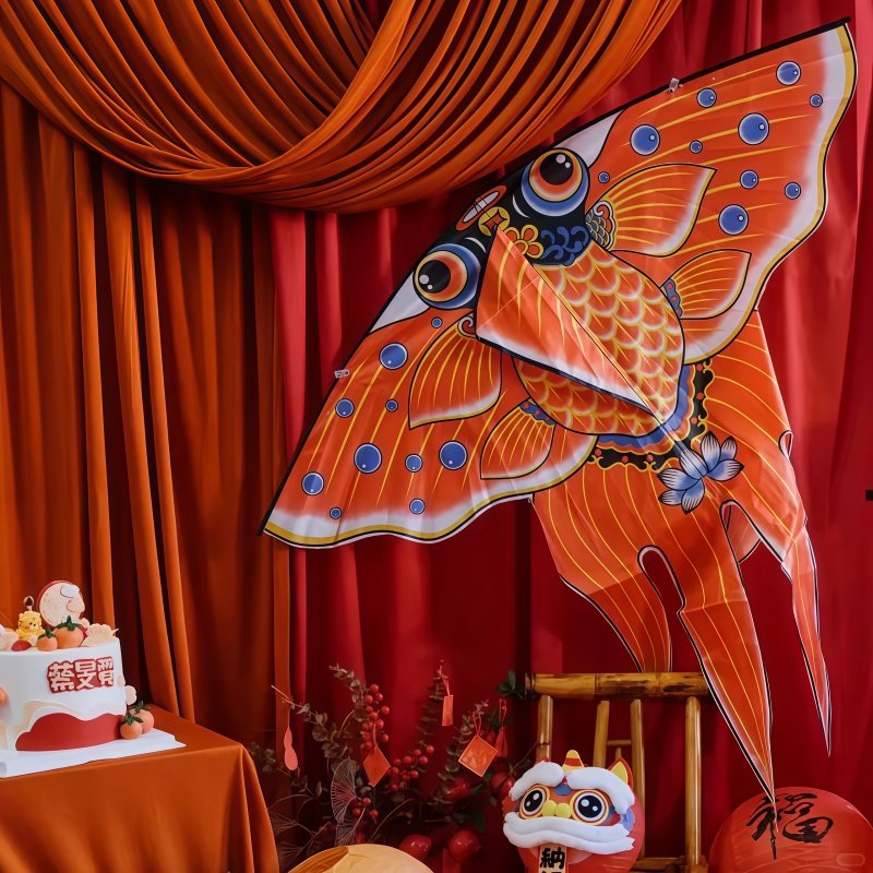 新款潍坊金鱼风筝长尾中国风烫金鲤鱼风筝成人儿童微风易飞风筝
