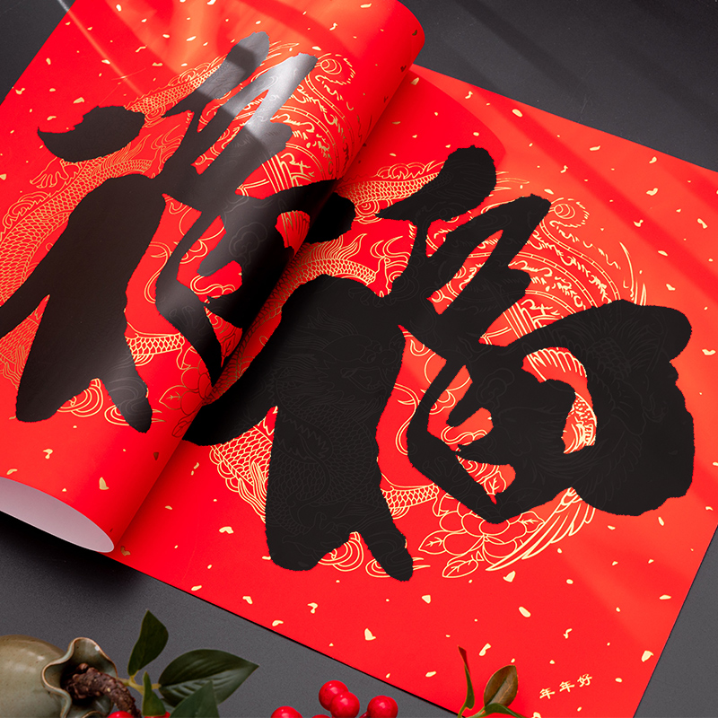 2023年福字门贴兔年新年贴纸红纸大张春节对联专用斗方春联纸加厚