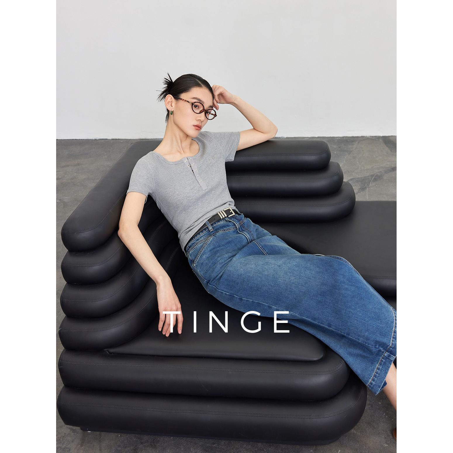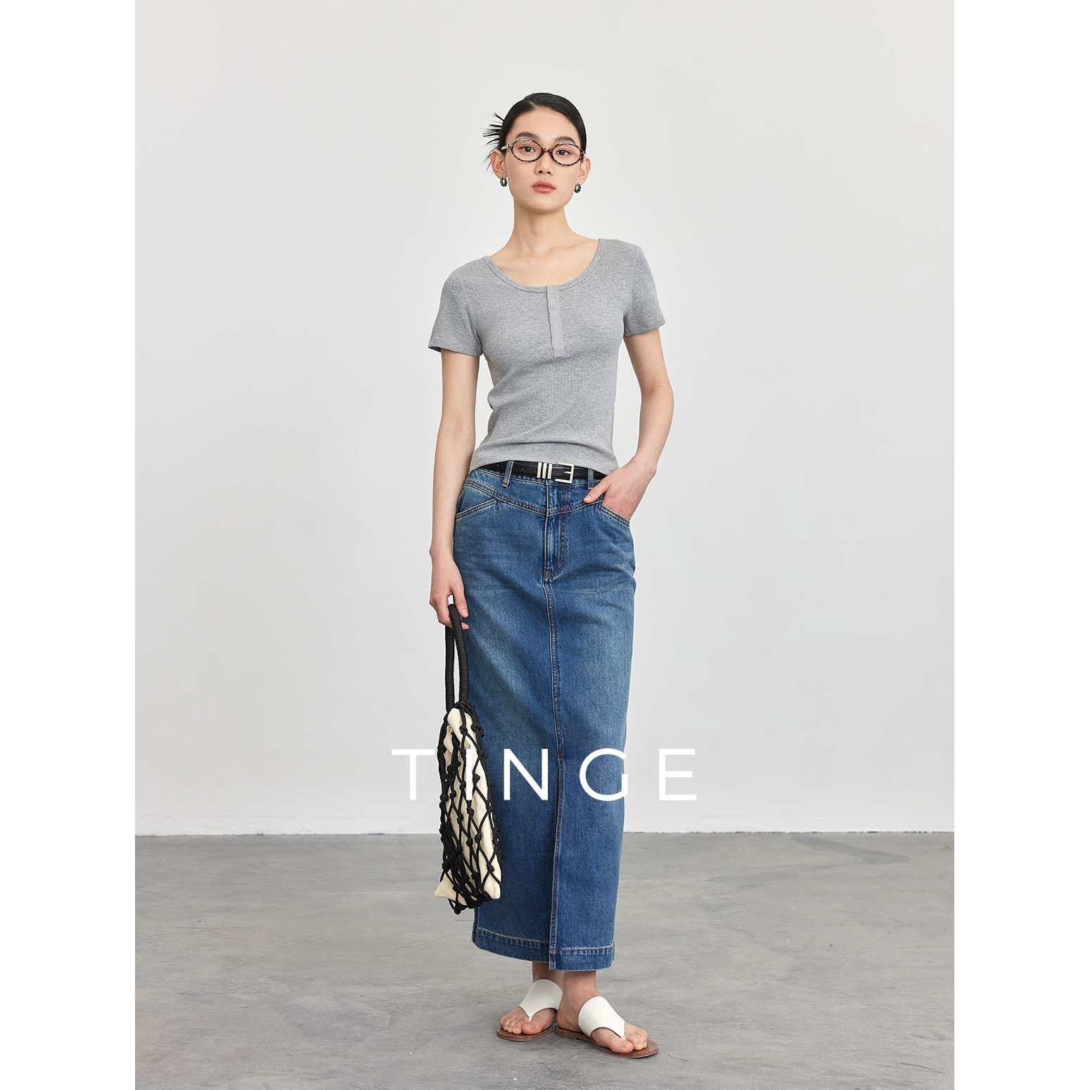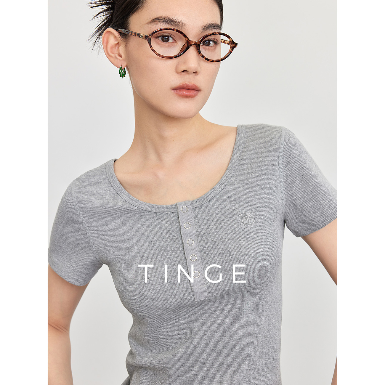 TINGE贴己美式复古知识分子亨利衫短袖T恤女新款针织衫打底上衣