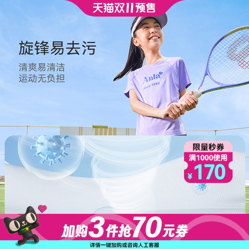 安踏儿童女童针织短袖衫2025夏季新款透气舒适中大童跑步运动短T