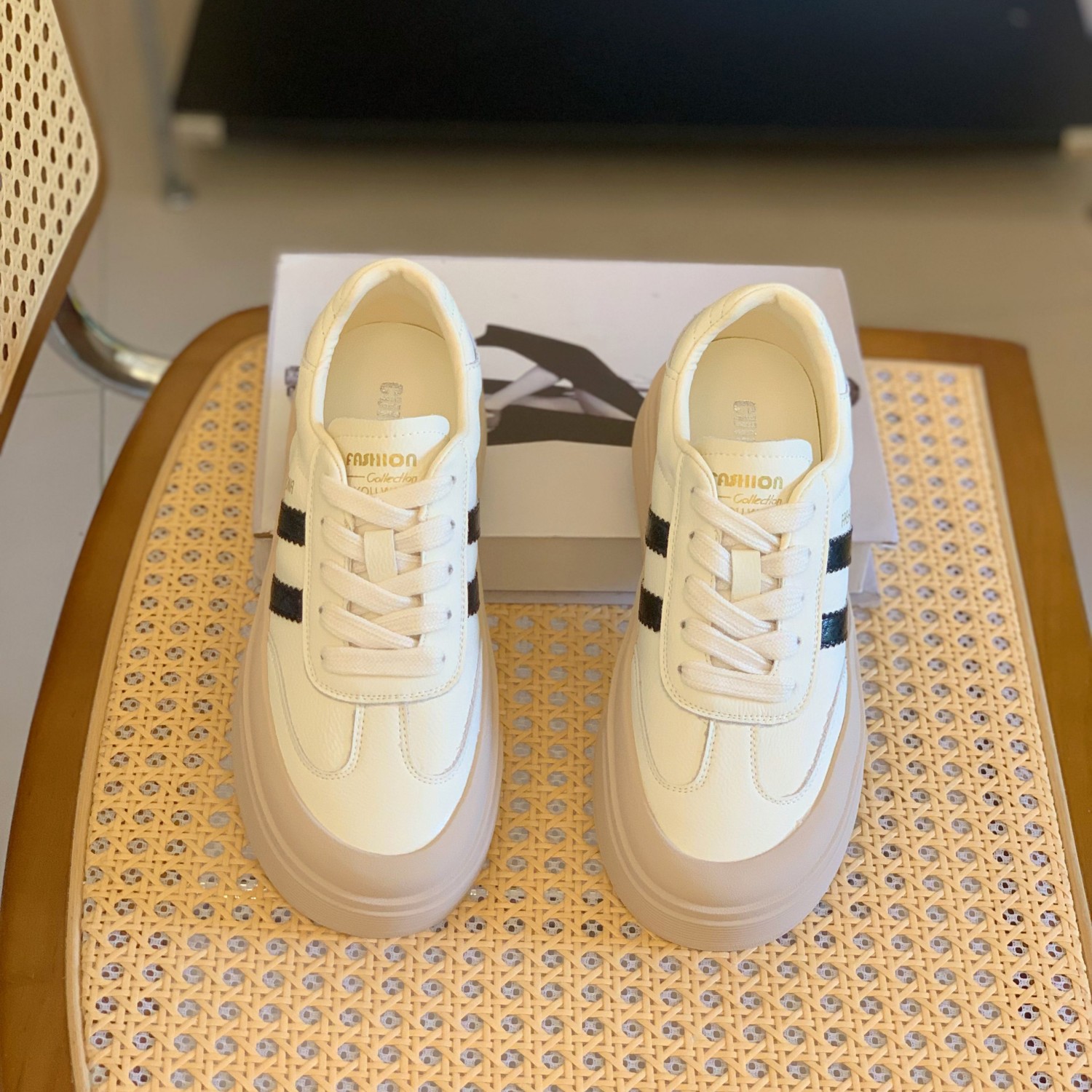 网红爆款松糕厚底真皮德训鞋女2025秋季新款简约百搭超火休闲板鞋