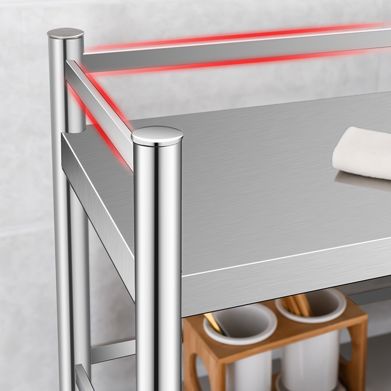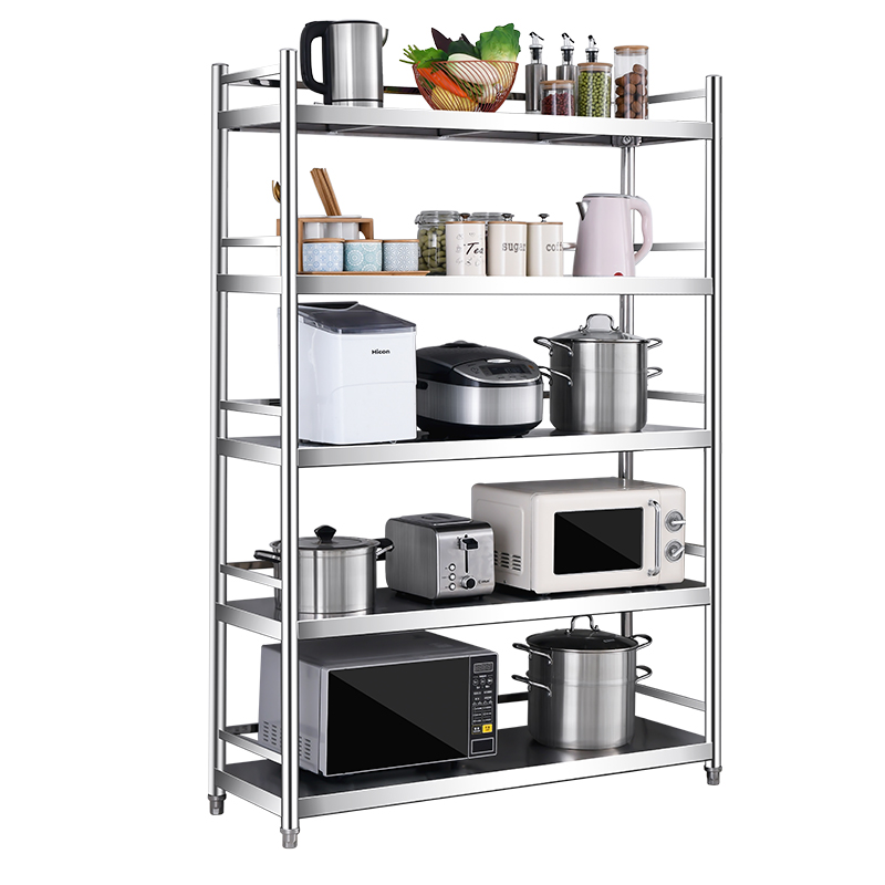 带围栏不锈钢厨房置物架多层落地收纳架子五层家用储物微波炉货架