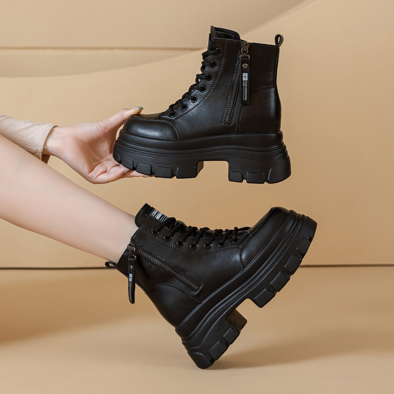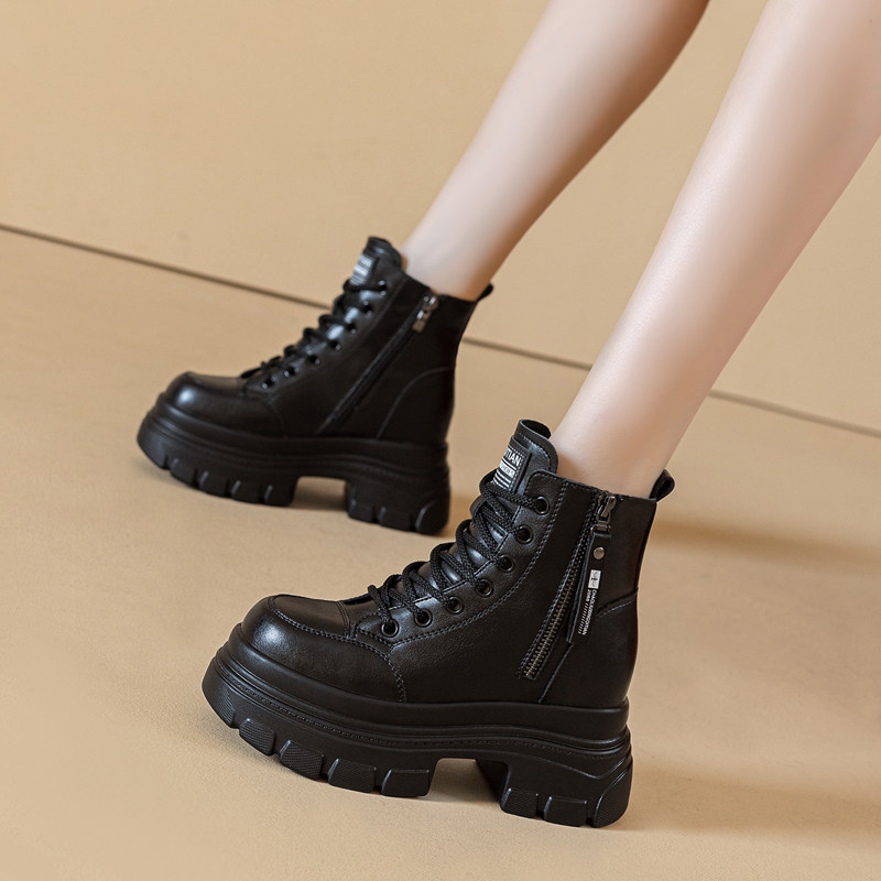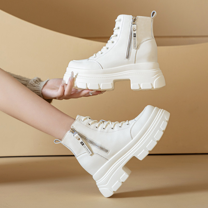 真皮厚底马丁靴女2025秋冬新款粗跟白色短靴女靴子内增高加绒棉靴