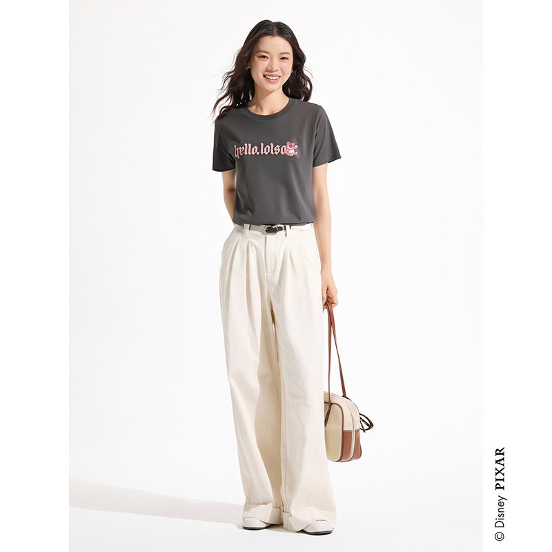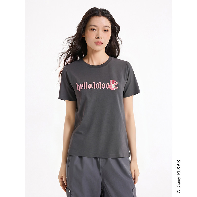 热风女士卡通印花短袖T恤上衣2025年夏季新款草莓熊学生T恤IP联名