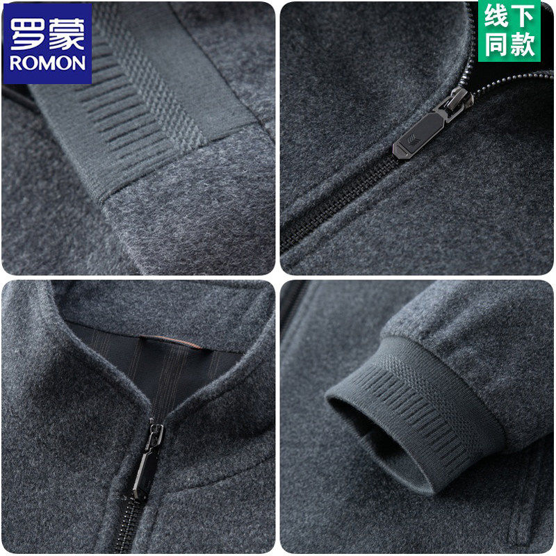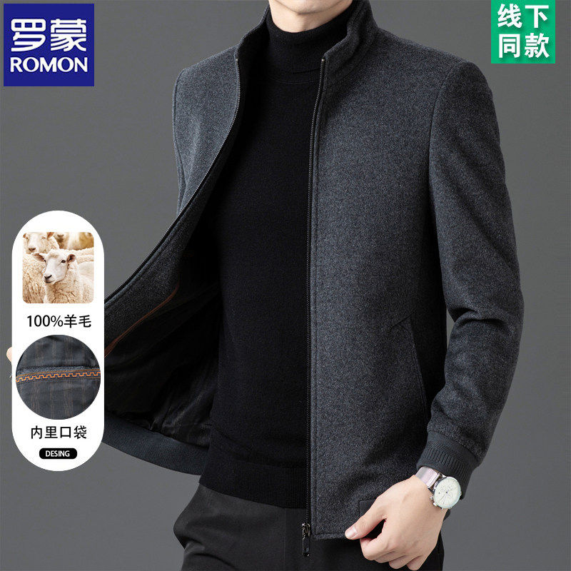 罗蒙轻奢100%纯羊毛呢夹克男士秋冬季加厚保暖舒适上衣高档外套男
