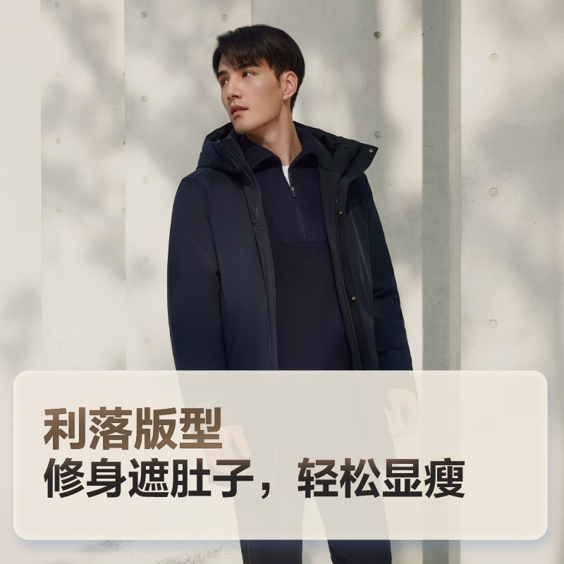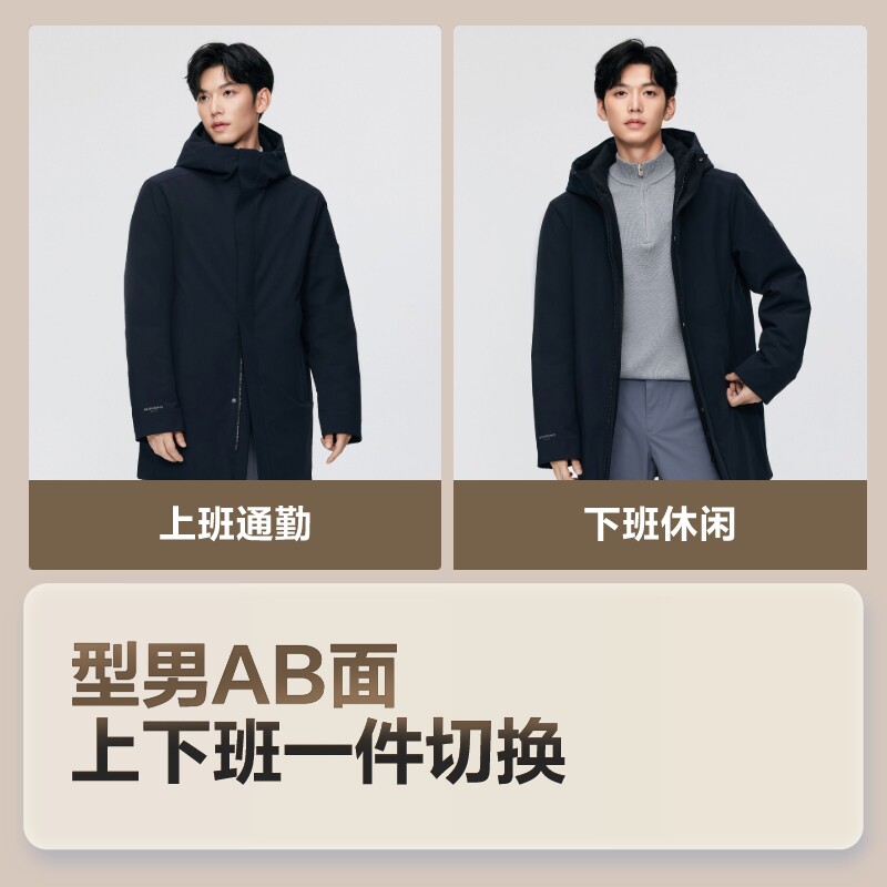 波司登新款90鹅绒男冬季连帽中长款内胆可脱卸通勤羽绒服保暖男款
