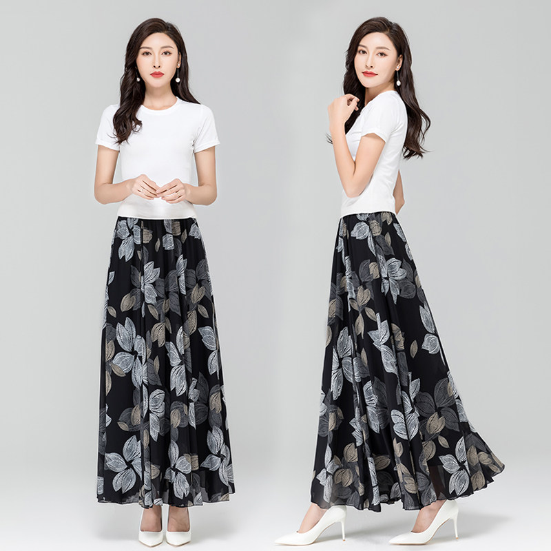 2025碎花新款夏季雪纺半身裙大摆百褶裙高腰大码沙滩裙半身长裙女