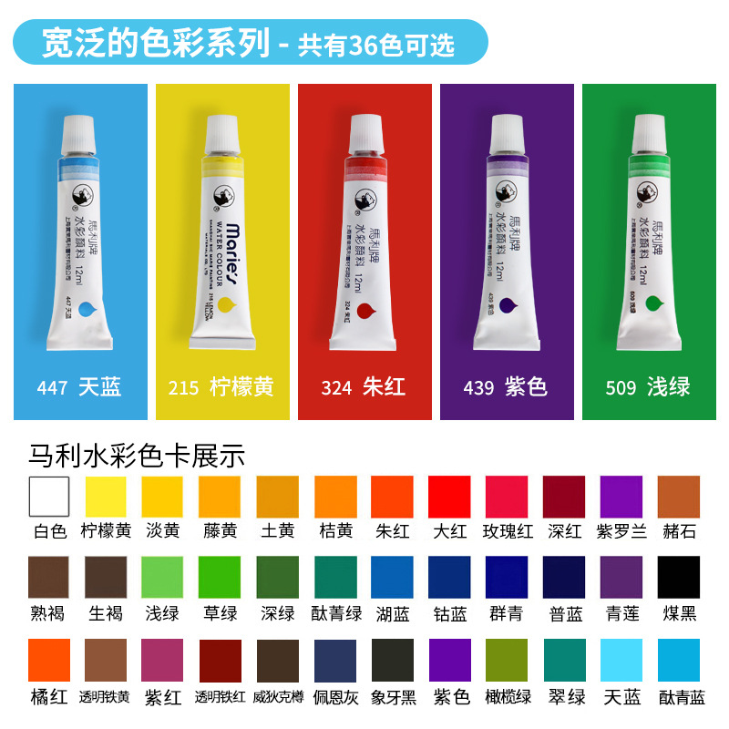 马利水彩画颜料单支12ml铝管装水彩颜料补充分装 单支水彩颜料21