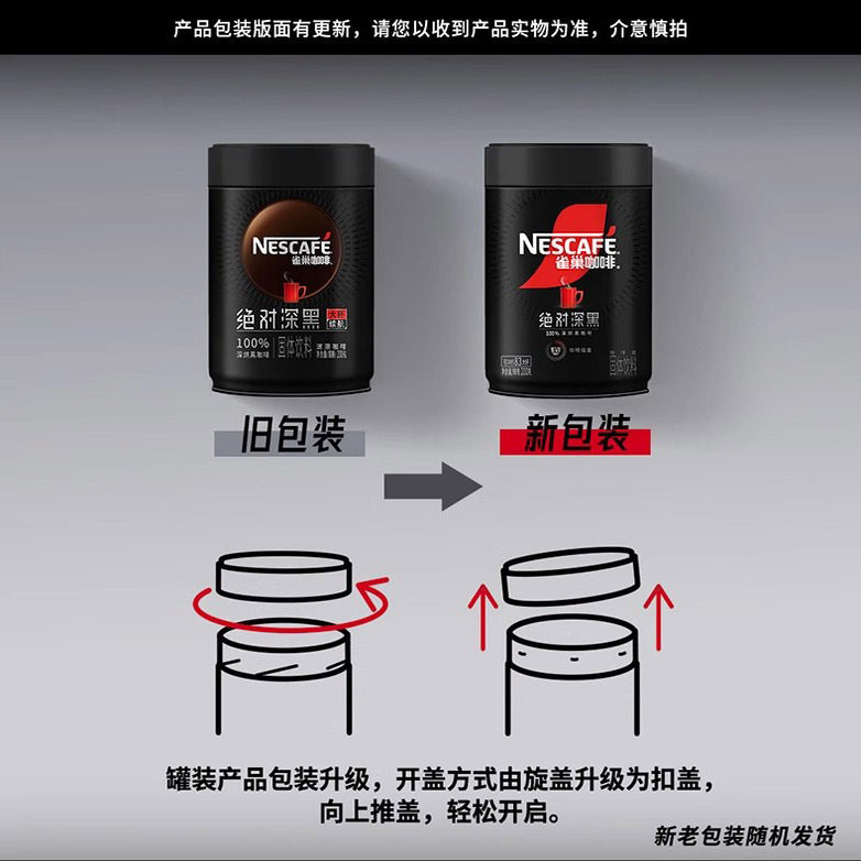 雀巢绝对深黑咖啡学生提神深度烘焙纯咖啡粉无蔗糖添加200g罐装