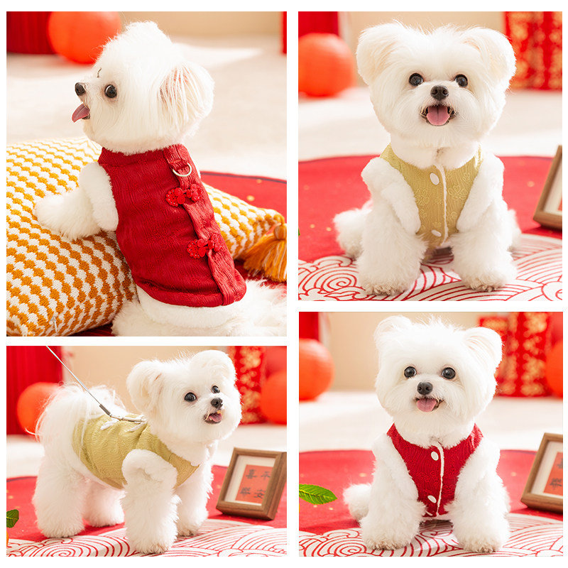小狗狗新年衣服2025新款冬装嬉皮狗宠物泰迪比熊过年冬季喜庆马甲