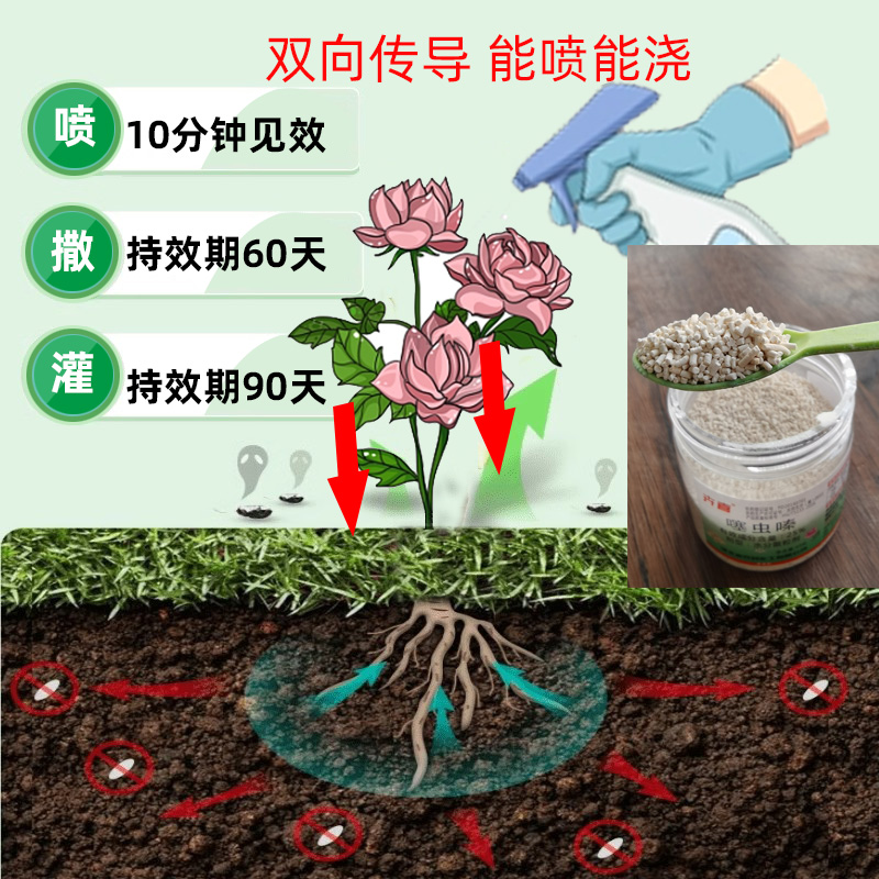 小白药杀虫剂蓟马蚜虫专用药多肉蔬菜植物介壳虫土壤养花防虫颗粒