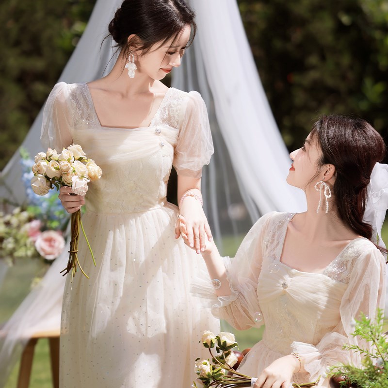 伴娘服2024新款香槟色连衣裙高级感小众平时可穿姐妹团缎面礼服女