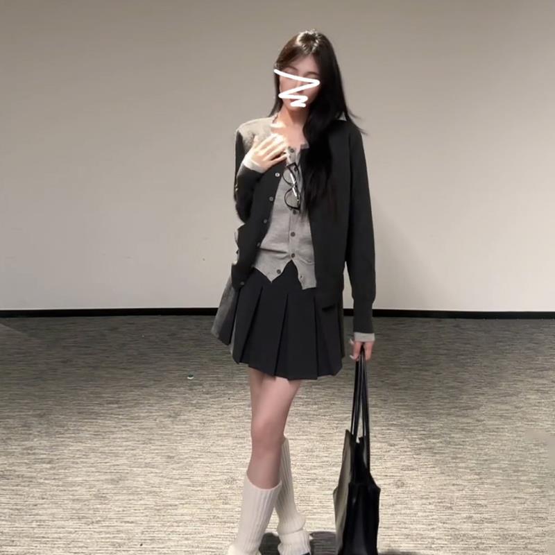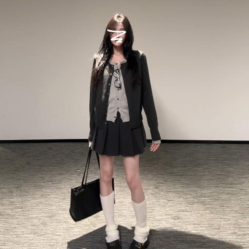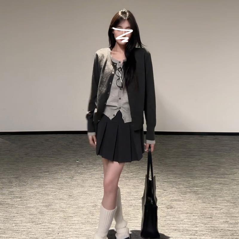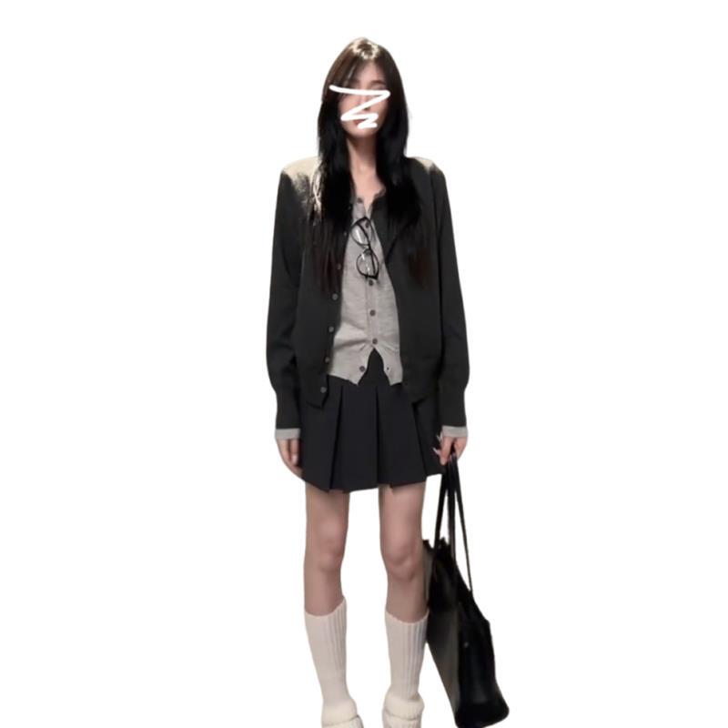 灰色假两件针织上衣女2025早春季新款打底内搭高级感毛衣开衫外套
