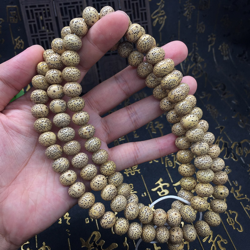 海南原生态星月菩提108颗鸡油黄正月苹果珠黄籽佛珠手串男11/12mm