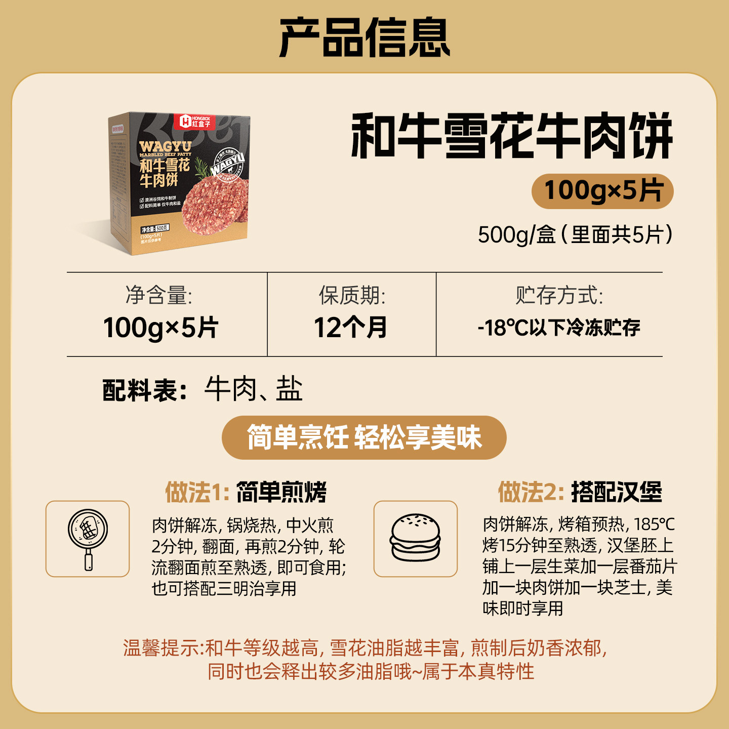红盒子澳洲谷饲和牛雪花牛肉饼