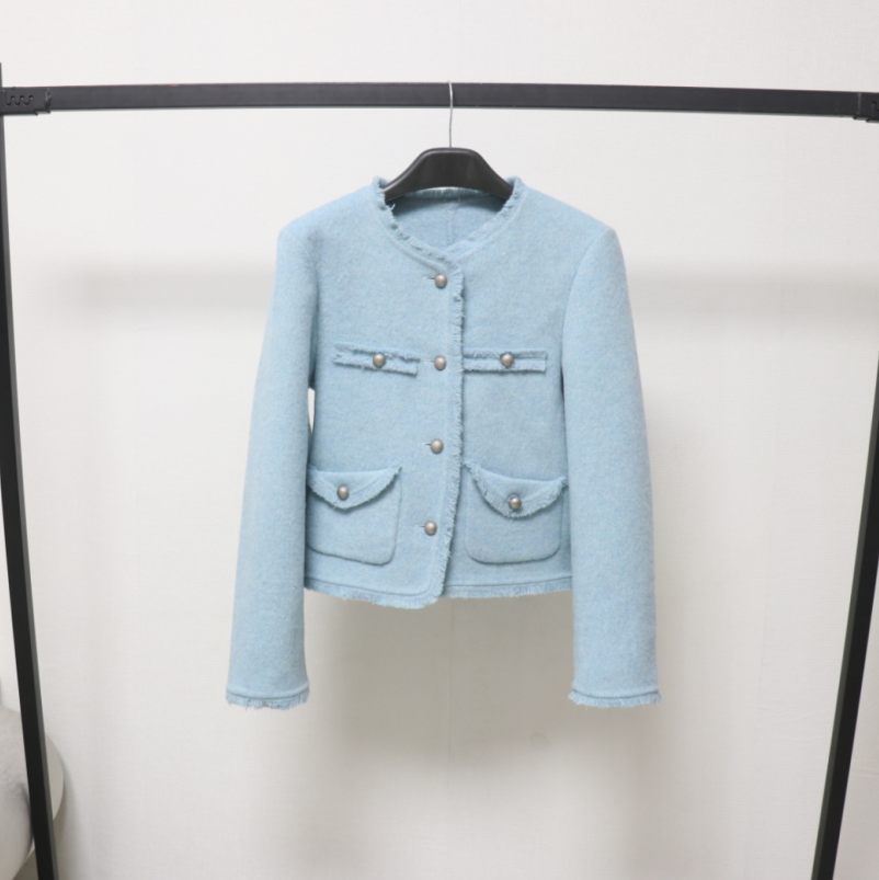 2025春秋季新品小香风双面羊毛大衣女短款小个子毛边法式毛呢外套