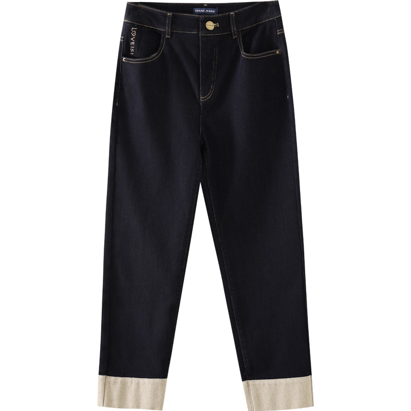 娅丽达深蓝色直筒裤女