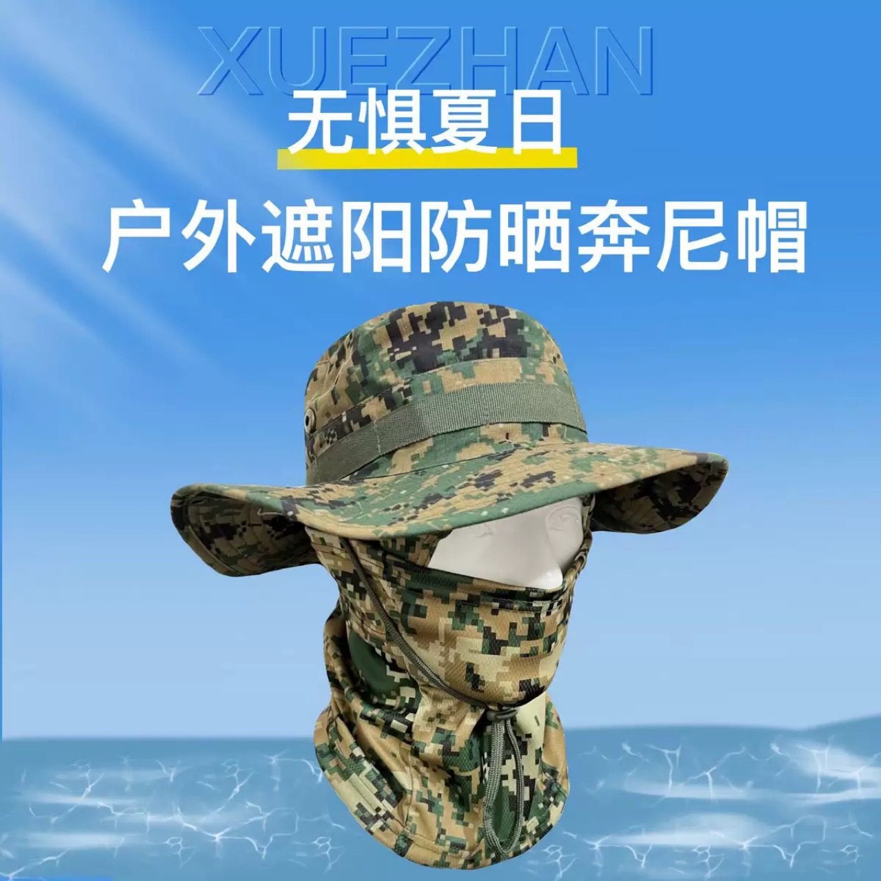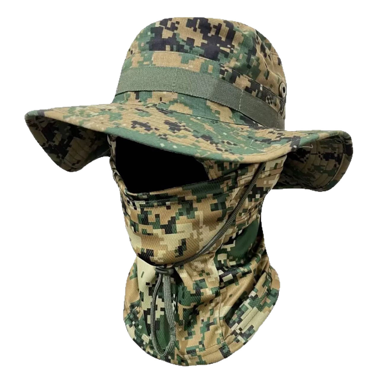 迷彩圆边帽头套套装户外登山渔夫帽抽绳防风奔尼帽旅行登山钓鱼帽