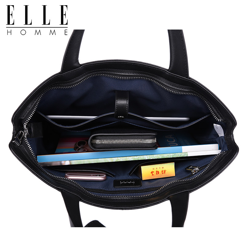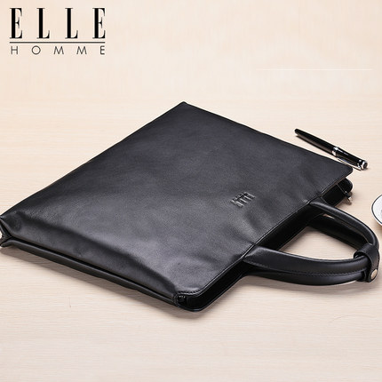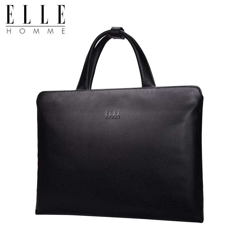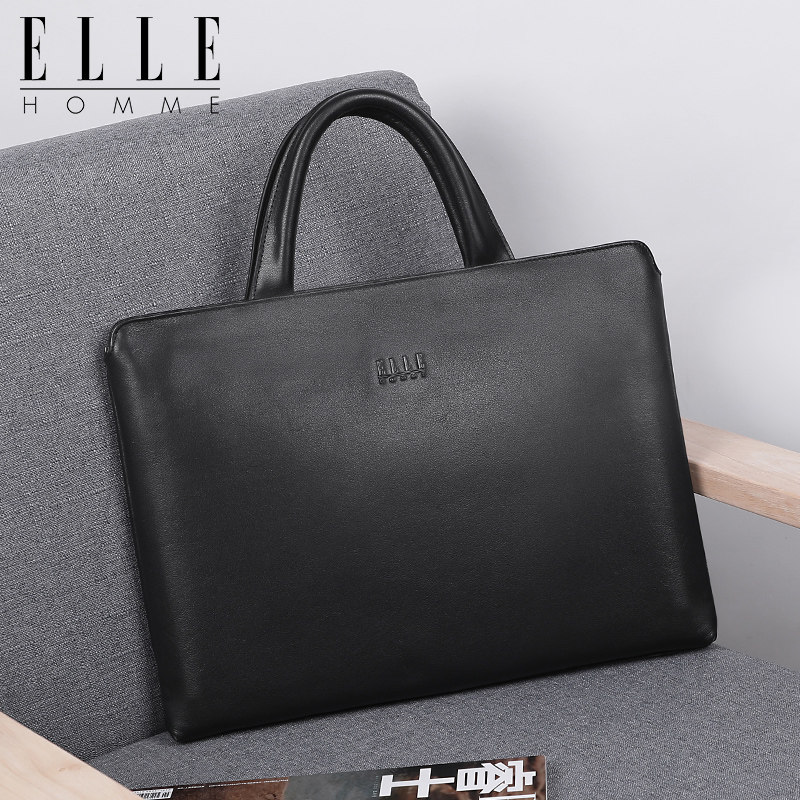 ELLE HOMME真皮手提包男包头层牛皮软皮商务横款公文包轻薄款挎包