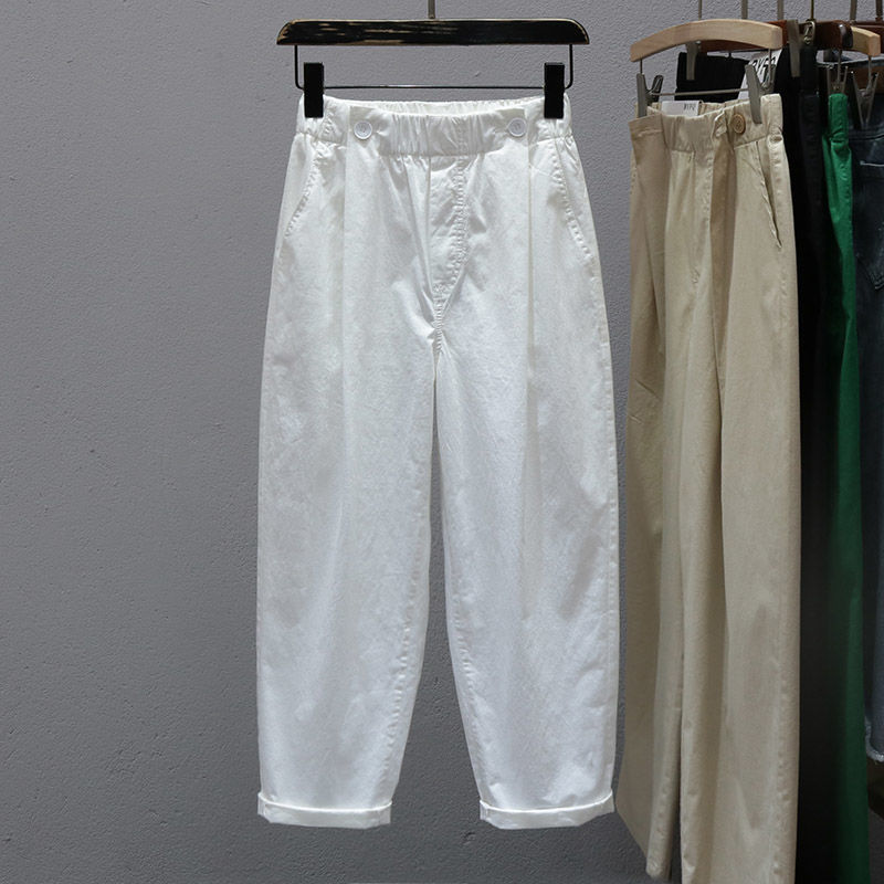 夏季宽松休闲裤女白色2024簿款松紧腰显瘦哈伦裤九分时尚老爹裤潮