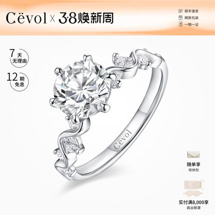 Cevol新奢钻石秘密花园系列蔓语铂金克拉群镶结婚钻戒钻石戒指女