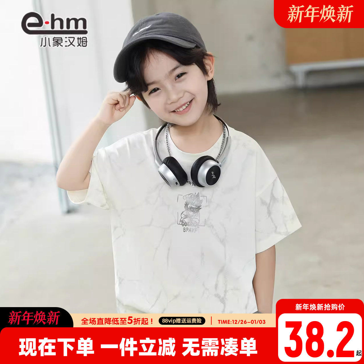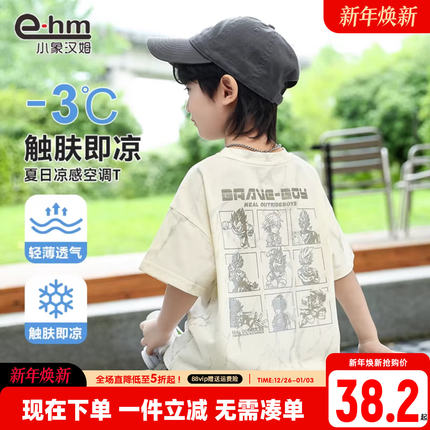 小象汉姆童装男童短袖t恤凉感T恤衫2025夏装新款儿童半袖白色体恤