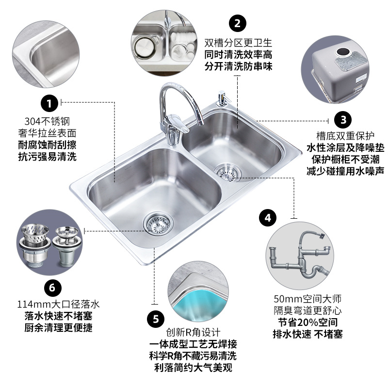 科勒304不锈钢水槽双槽洗碗池洗菜盆厨房台上台下式水池水77601