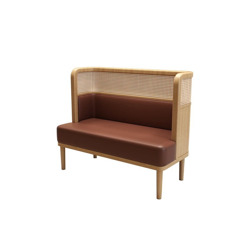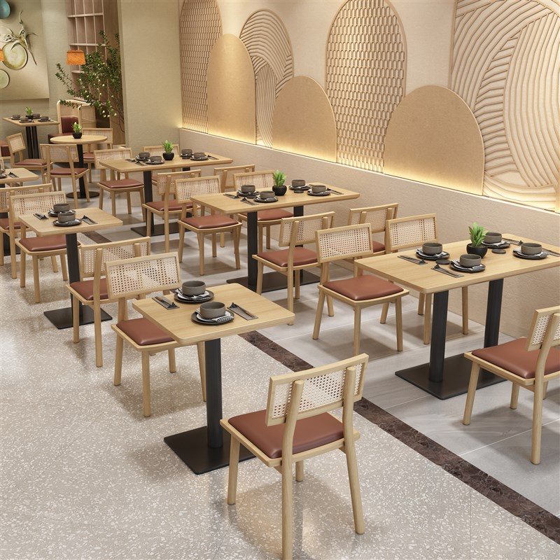 火锅店主题西餐厅靠墙编藤卡座茶餐厅饭店烤肉店实木餐桌椅组合