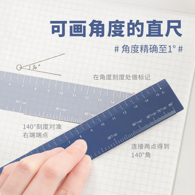 画角度的直尺多功能角度尺子绘图测量尺便携简约小学生考试用15cm塑料尺初高中生实用画图作图制图工具刻度尺