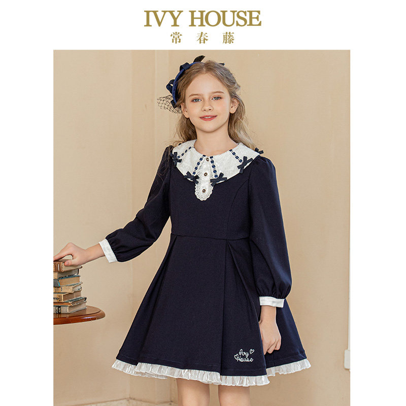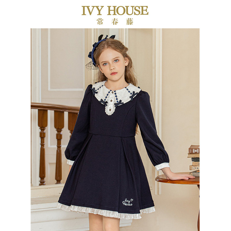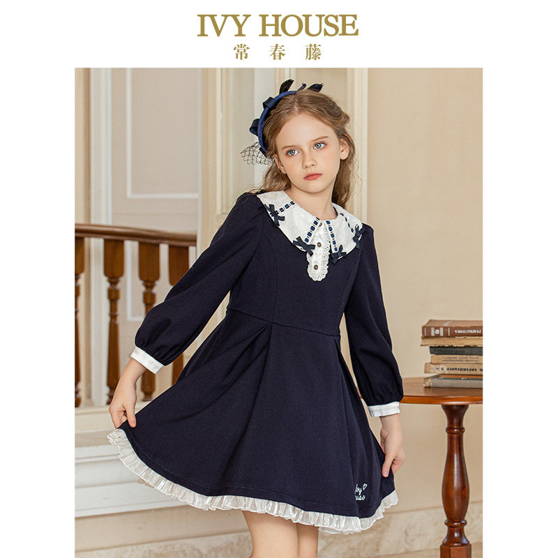 IVY HOUSE常春藤童装女童秋款 蕾丝领复古Lolita连衣裙洛丽塔亲子