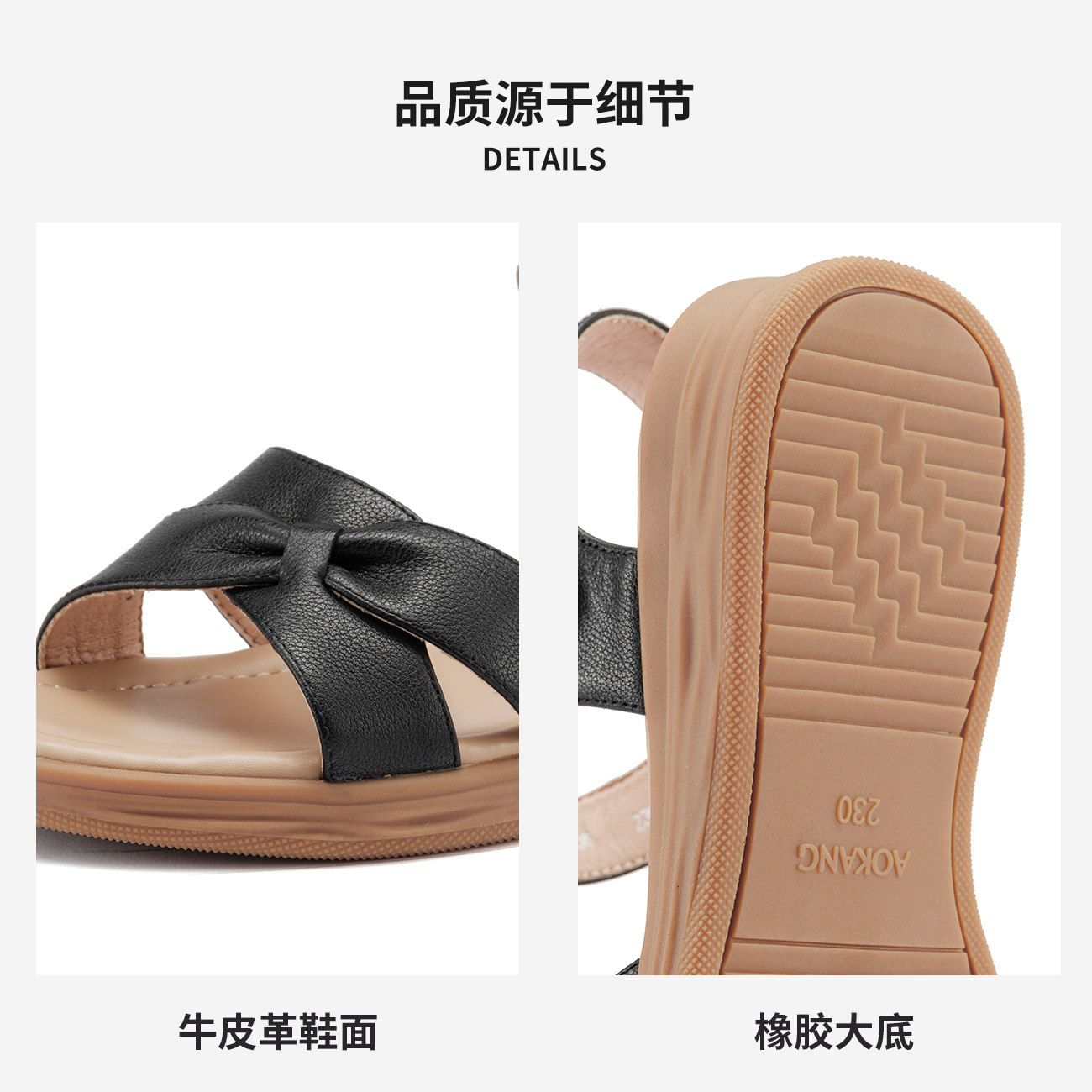 奥康女鞋 2024夏季新款真皮舒适时尚凉鞋日常休闲中老年妈妈凉鞋