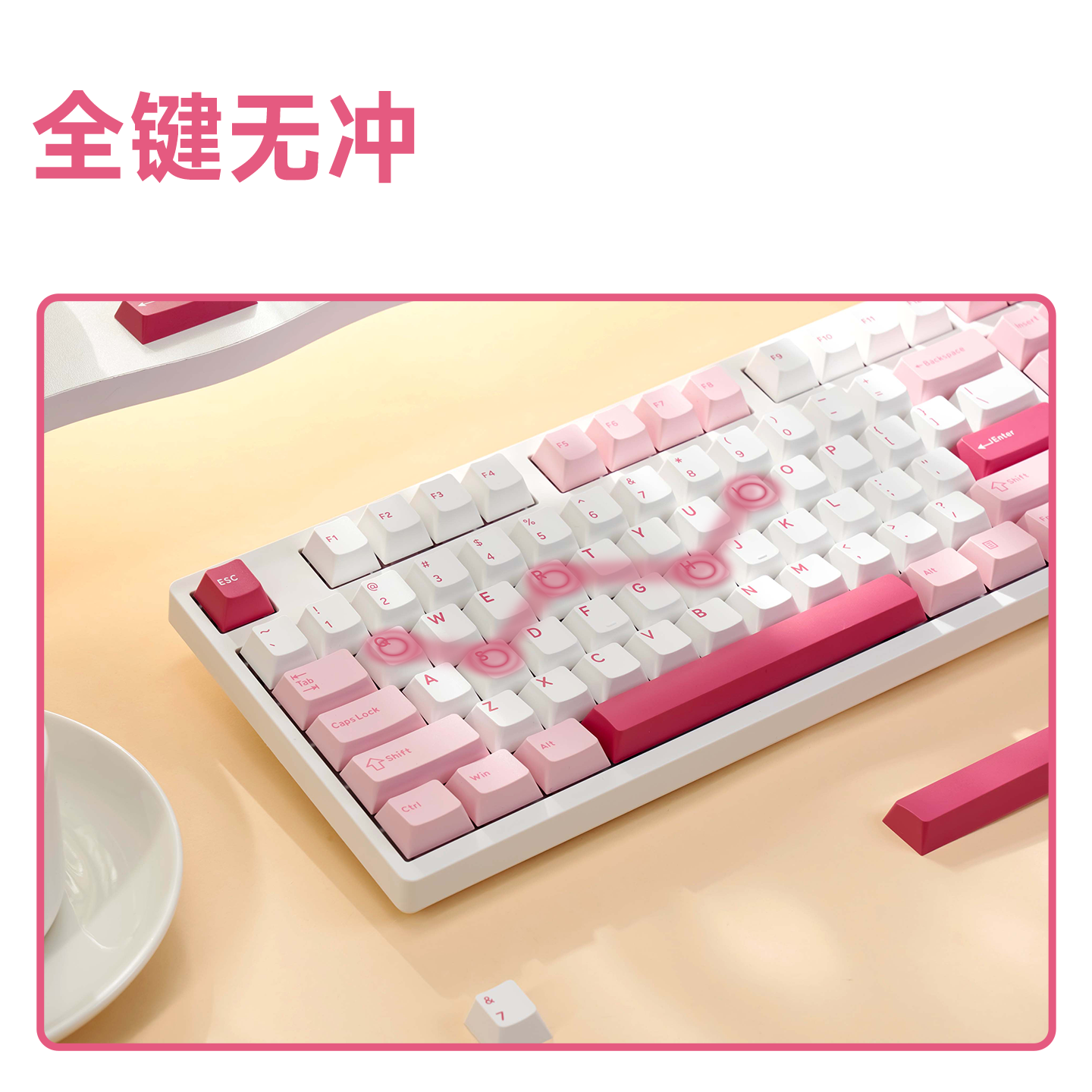 AKKO 3108RF晚樱机械键盘可爱女生粉色电竞办公无线2.4G电脑通用