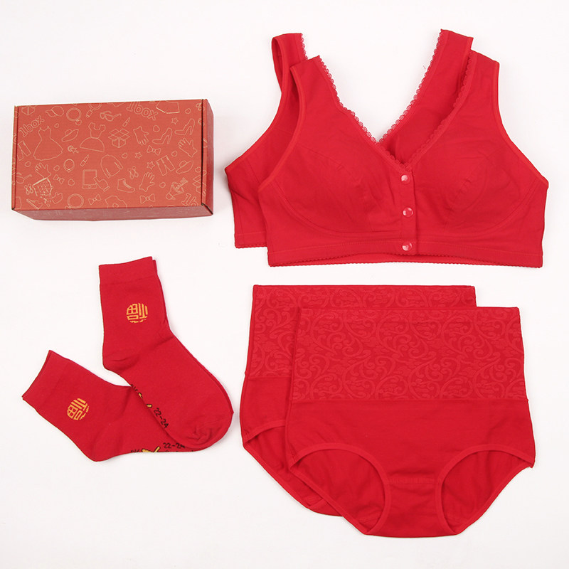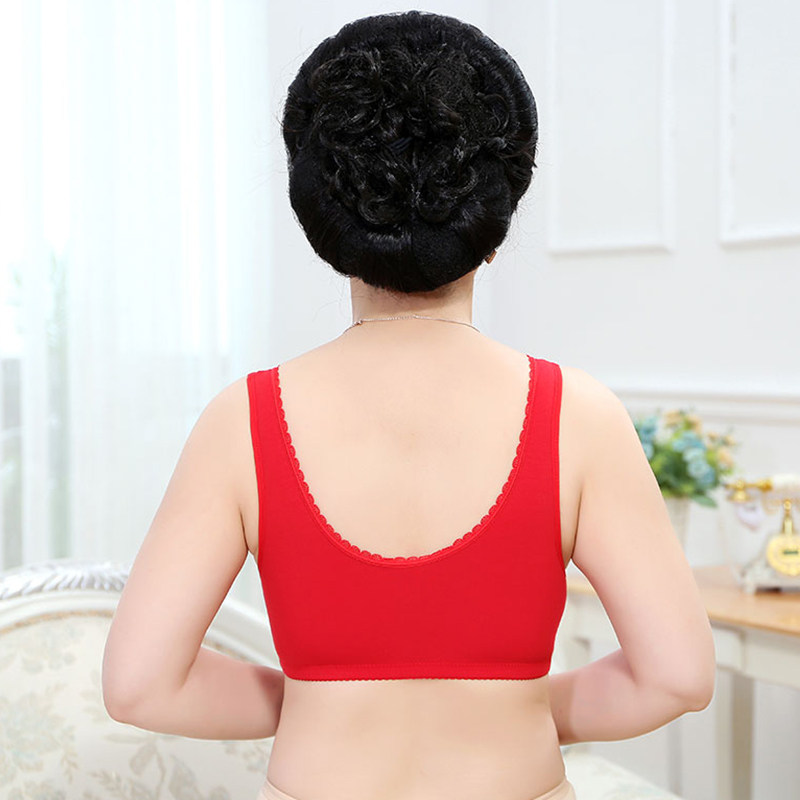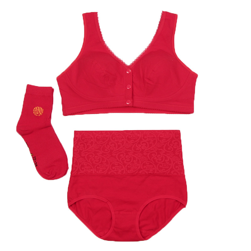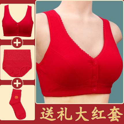 本命年红色内衣套装中老年无钢圈文胸内裤女属马妈妈款前扣背心式
