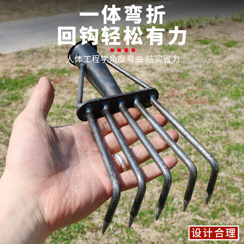 加粗钢筋钉耙农用五齿铁耙多功能圆钢翻地耙子搂草耙松土捡花生耙