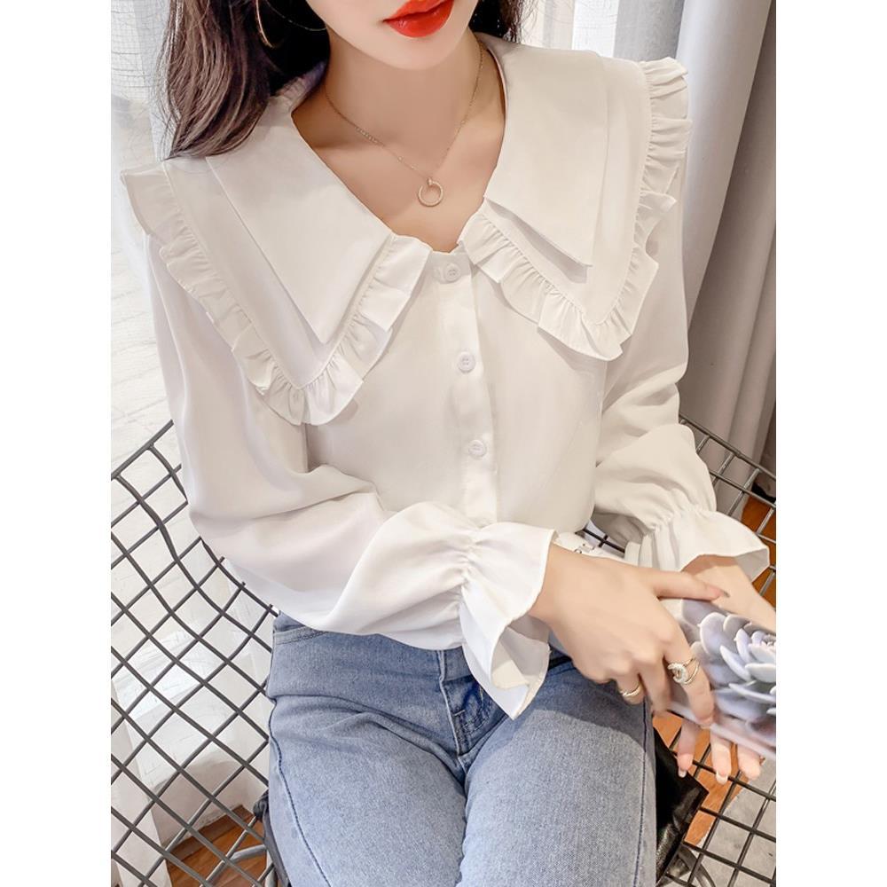 法式娃娃领雪纺衬衫女春秋2025新款高级感气质打底衫独特别致上衣