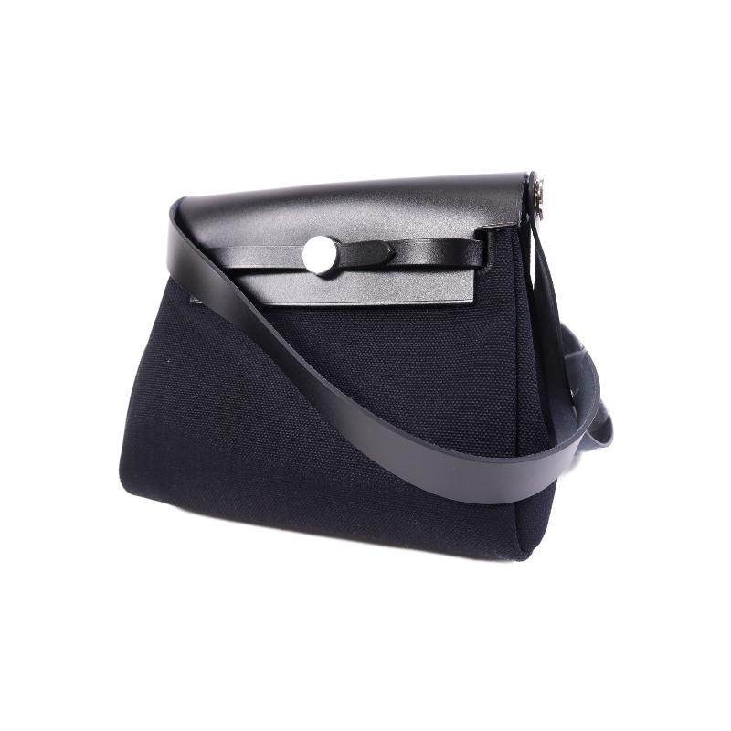 中古Hermes爱马仕女包S级99新shoulder bag斜挎包帆布单肩包黑色