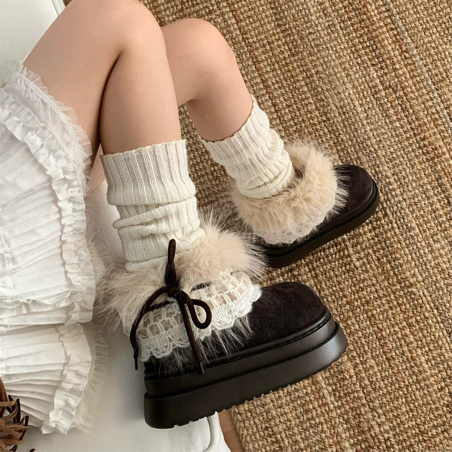 冬季舒适女士ins风毛毛雪地靴增高厚底加绒防滑费尔岛短靴子棉鞋