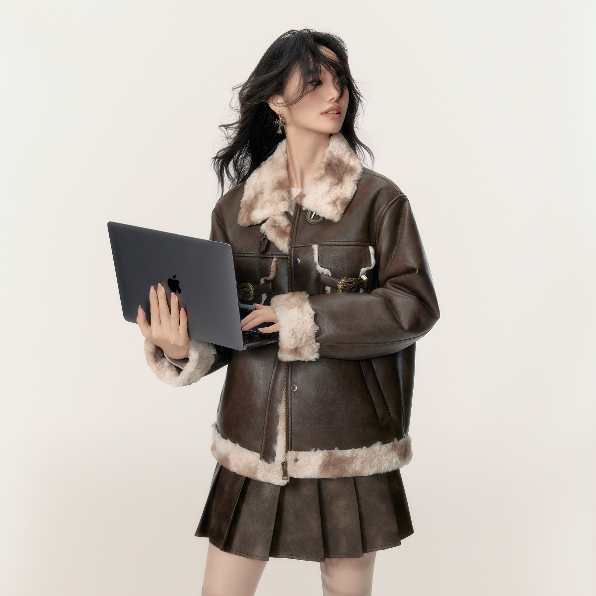 Eptison美式复古风PU皮外套