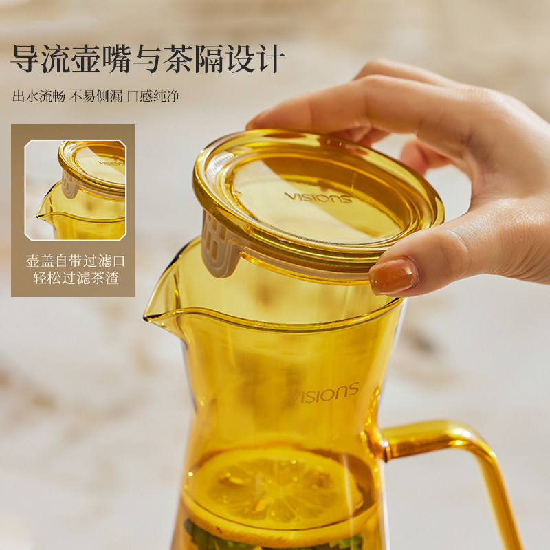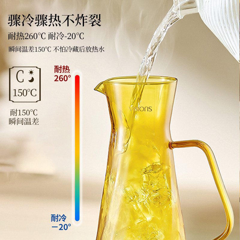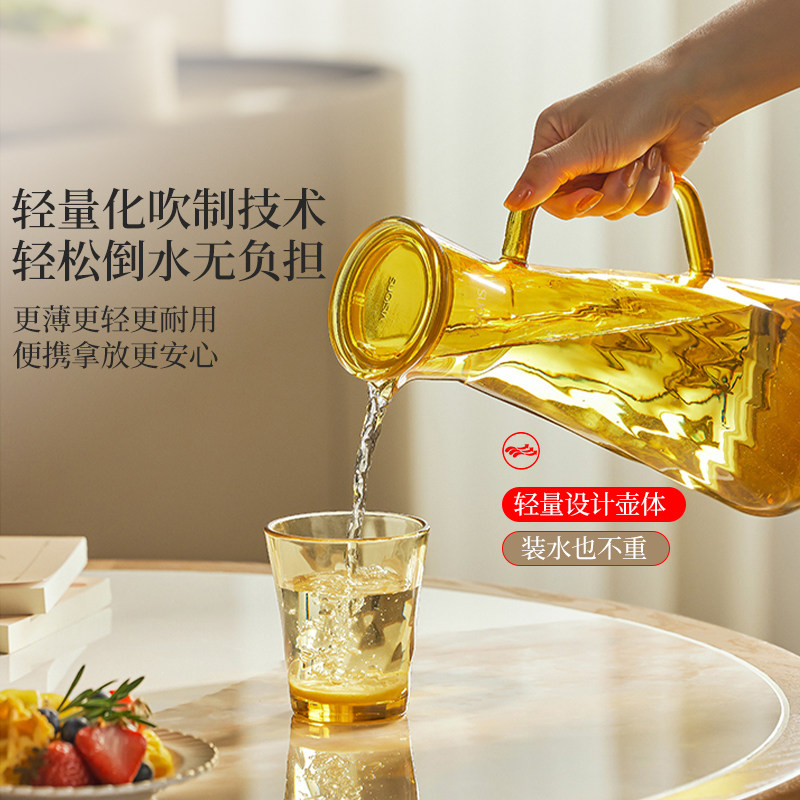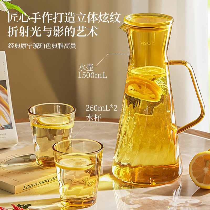康宁冷水壶家用大容量冰箱凉水壶玻璃耐高温夏天泡茶壶凉水杯套装