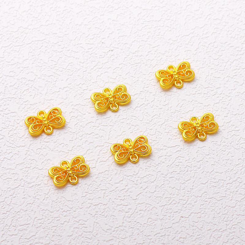 18K包金保色双吊蝴蝶吊坠平安双吊挂件项链吊饰材料diy饰品配件