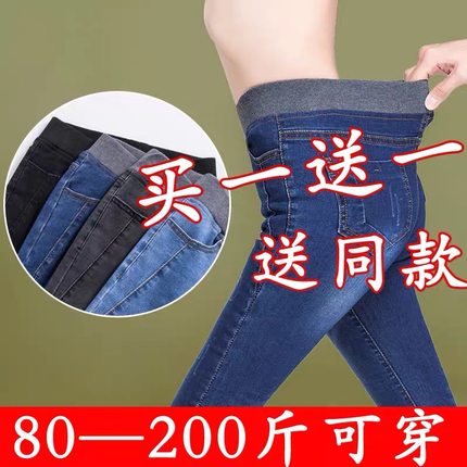 松紧腰牛仔裤女春秋季2025新款高腰弹力收腹显瘦大码胖mm小脚裤子
