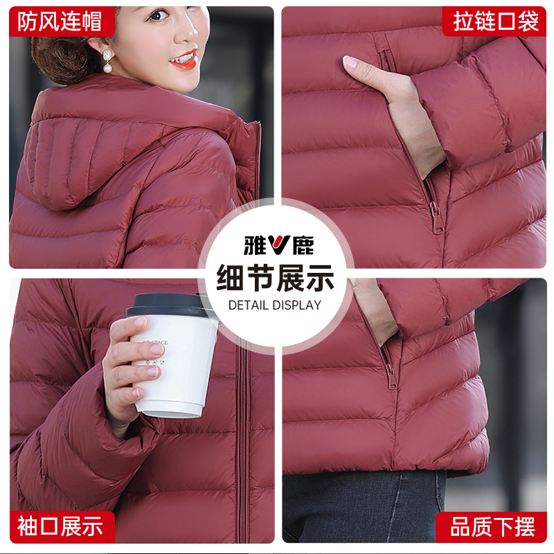 雅鹿轻暖显瘦排骨羽绒服妈妈装