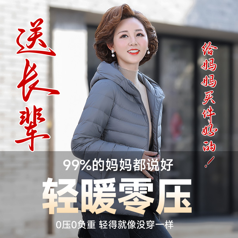 雅鹿短款连帽轻薄羽绒服女款2025年排骨零压中老年妈妈装保暖外套