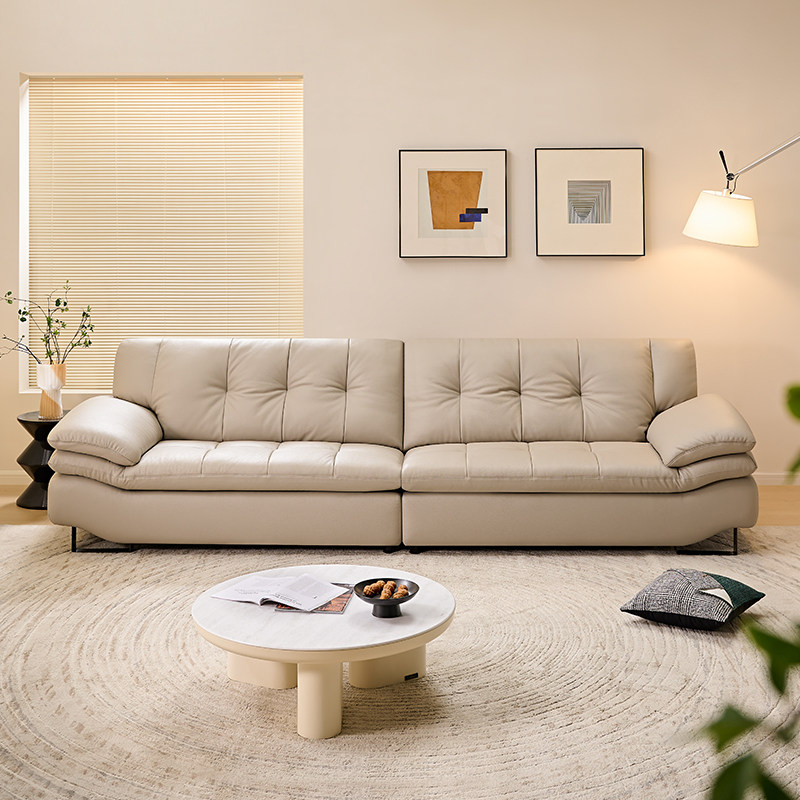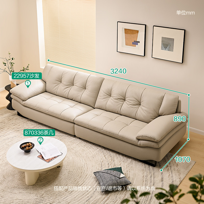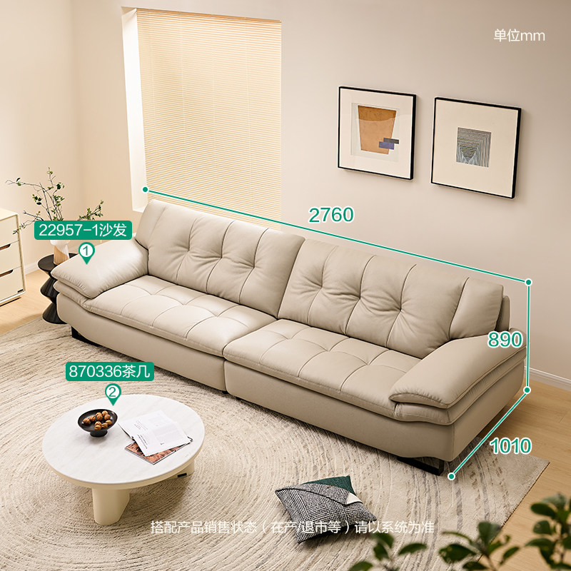 全友家居门店同款 时尚风 22957 头层真黄牛皮一字型直排皮艺沙发
