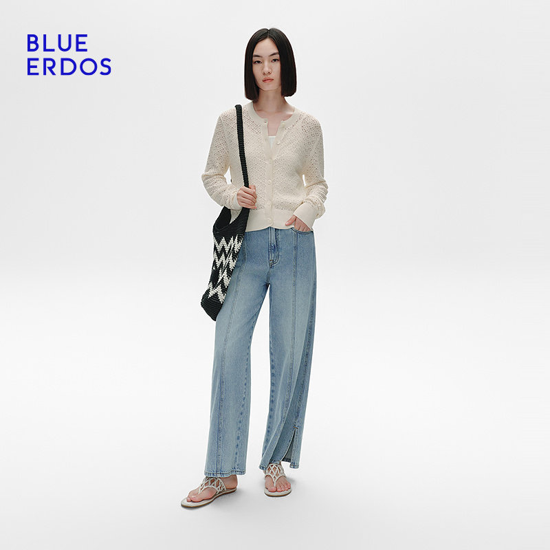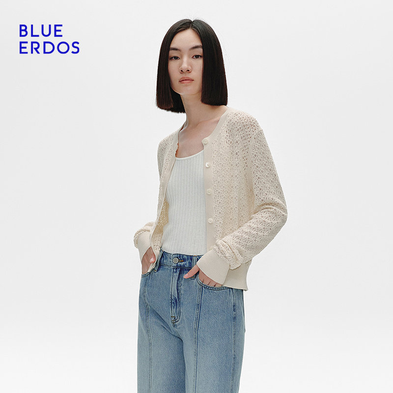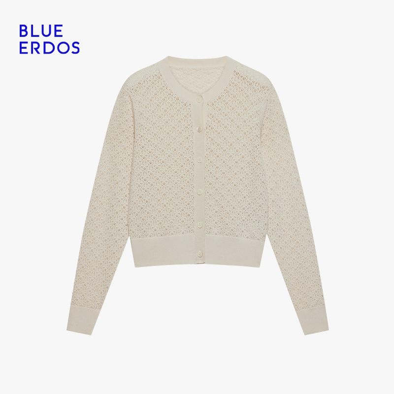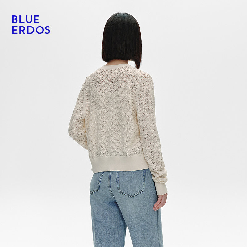 BLUE ERDOS冬季简约圆领短款蕾丝镂空针织开衫女B255D1026