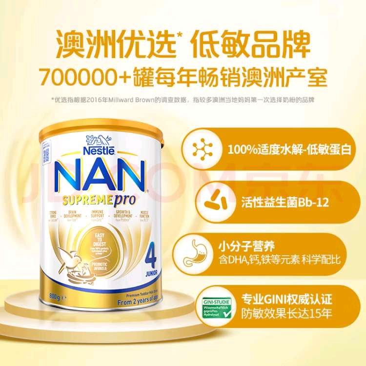 雀巢澳洲版超级能恩3段/4段适度水解婴幼儿奶粉800g 段位规格可选