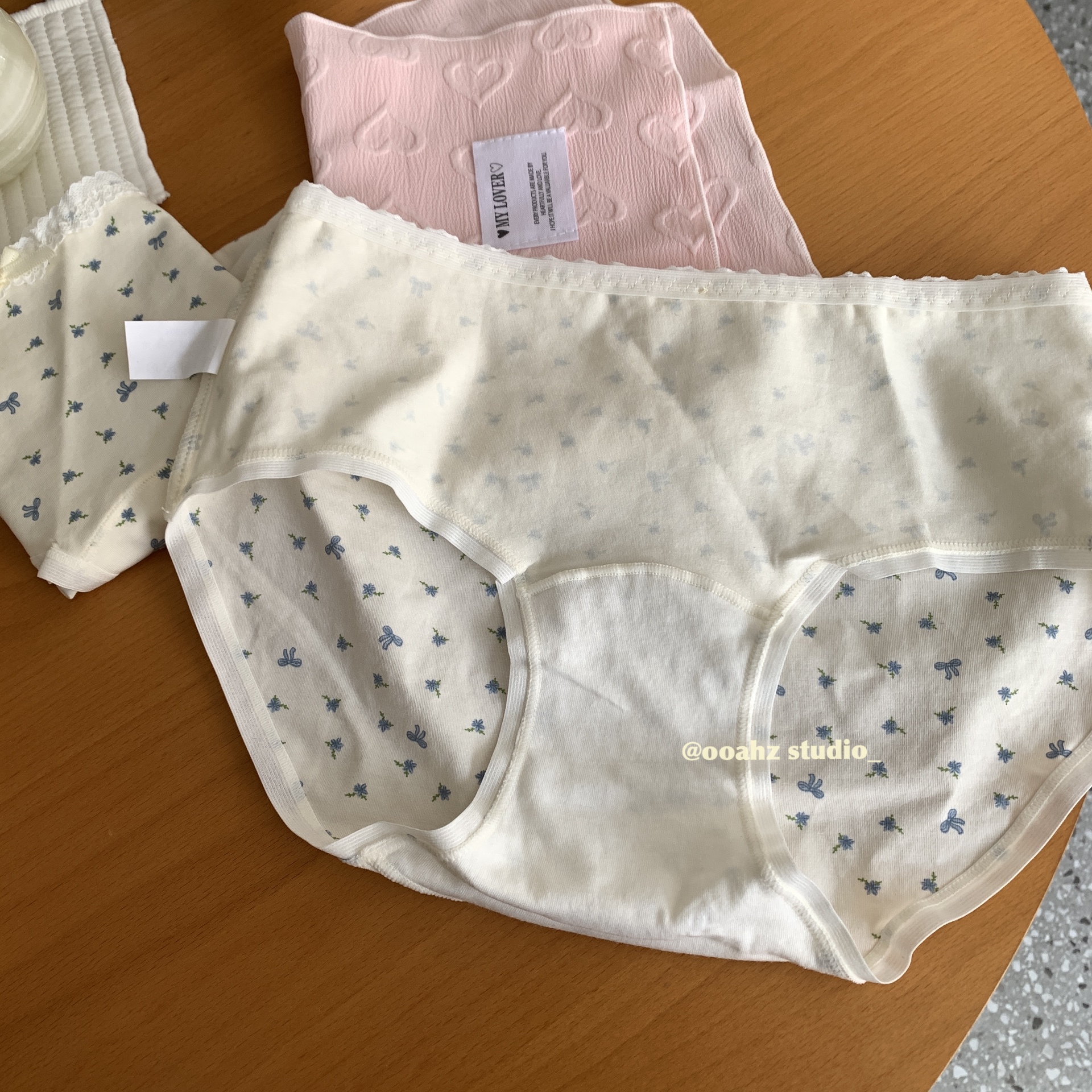 "尤其温柔"纯棉印花少女舒适亲肤内裤 A类婴儿棉抗菌田园风三角裤